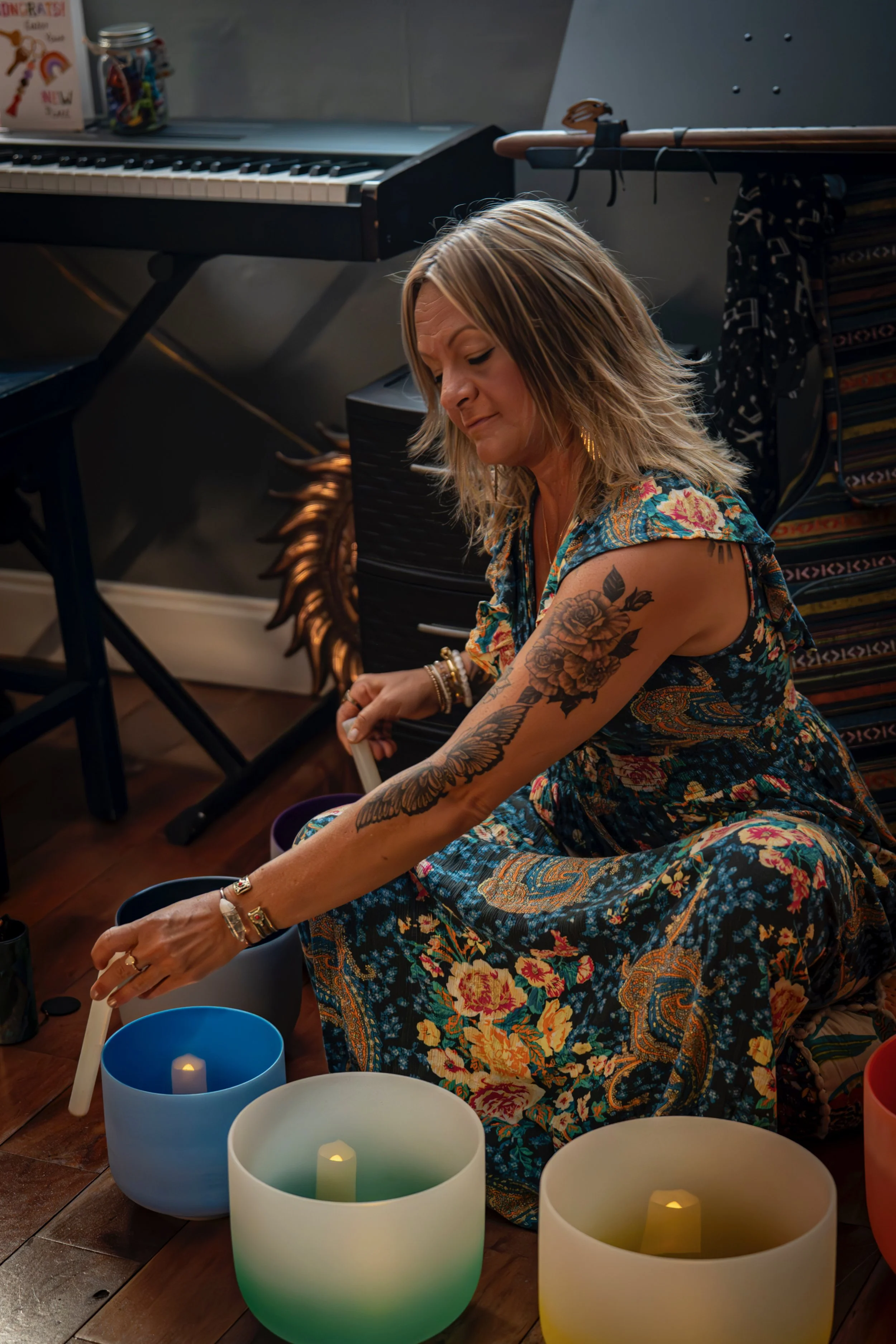 Every human body has 7 main centers of energy located along the center of the body aligning along the pelvic floor up to the very crown of the head. The word and concept of “chakra” is an ancient terminology that has been used by the Hindus, Mayans, Aztecs and Cherokees. They understood we are energetic beings. What sound healing can do is restore these energy centers (chakras) to their natural state of allowing your body to release any old blockages of stored trauma deep within. It is also a way to deal with daily stress and re-align before anything gets stuck. When all energy is aligned the separated chakras become fully opened into a surge of free-flowing fields of energy and color. This is the goal! This is the joy where we find peace, light and everlasting love for all.